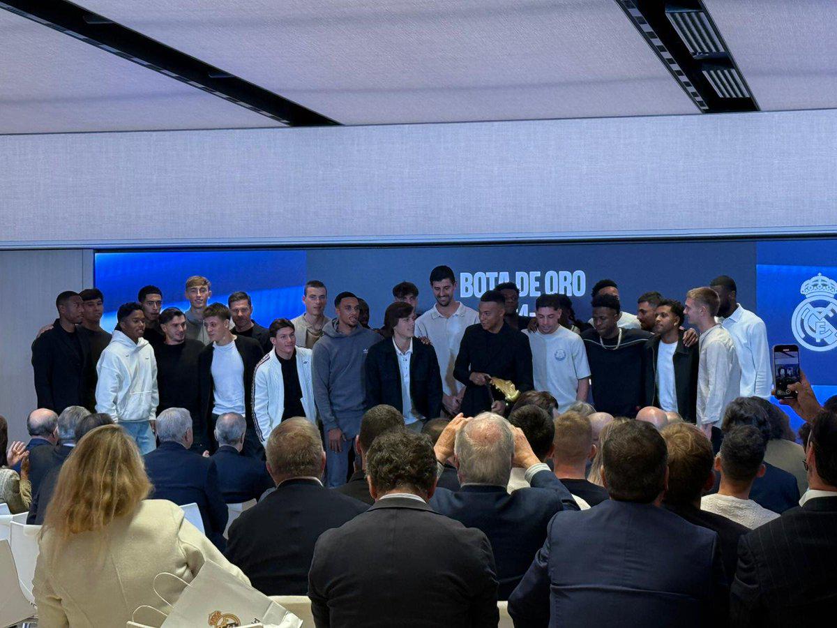 10月31日,在伯纳乌领取了2024-25赛季欧洲金靴奖速速查,皇马全队出席仪式。